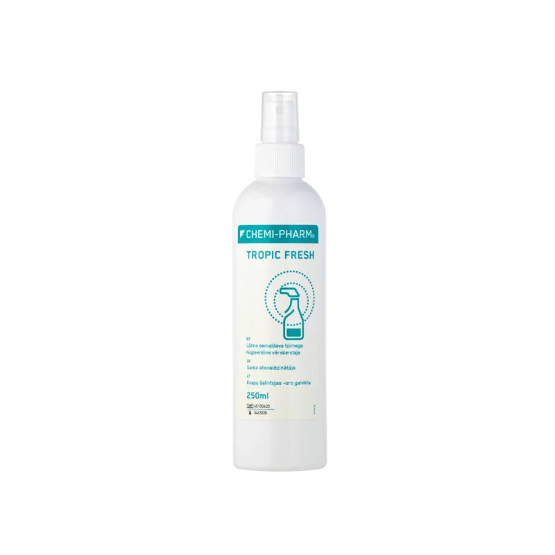 TROPIC FRESH — это гигиенический освежитель на водной основе двойного действия, используемый в медицинских и социальных учреждениях для устранения неприятных запахов, исходящих от человека, а также для освежения окружающего воздуха.