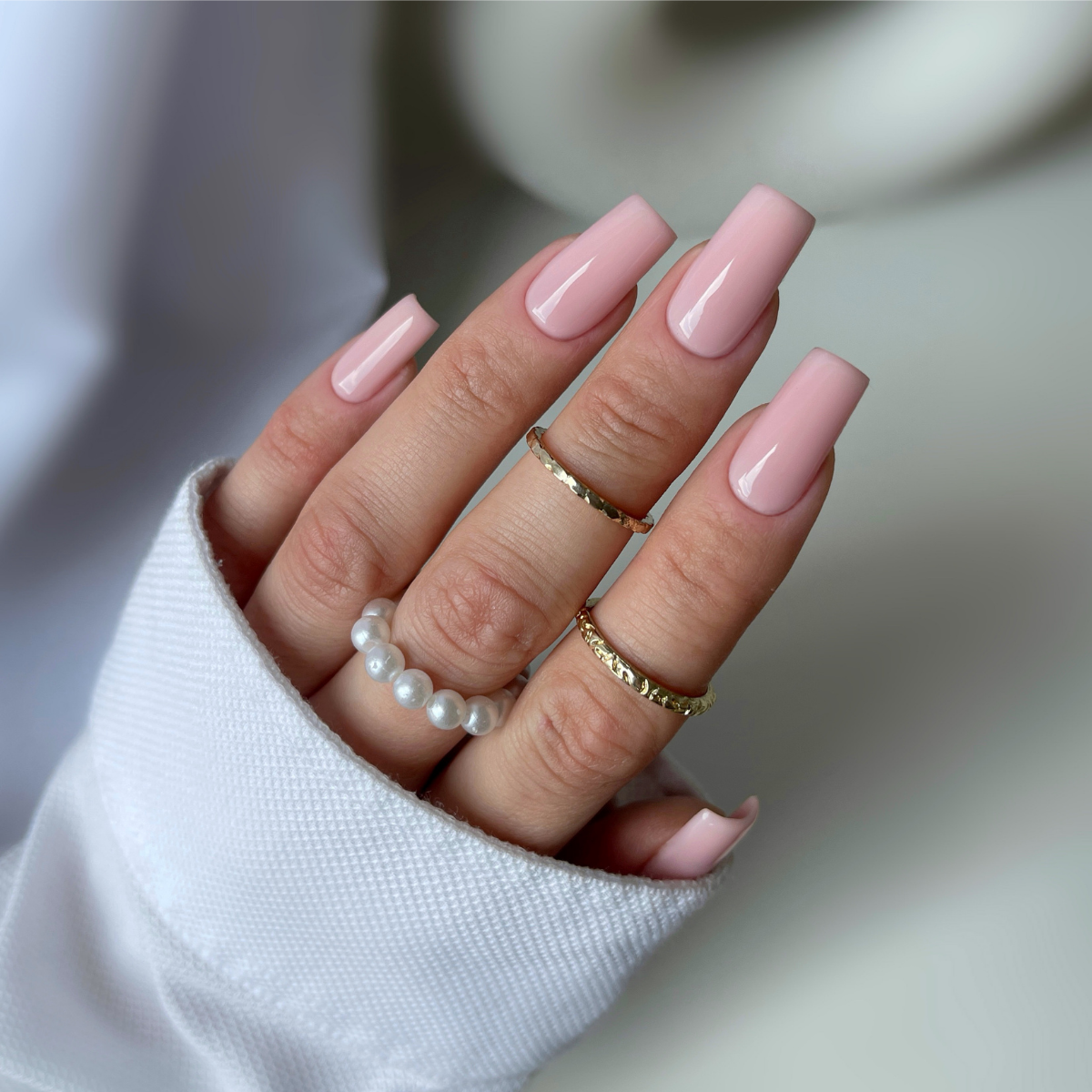 Тёплый розовый с бежевой ноткой — отличный выбор для нежных и элегантных стилизаций. Мягко подчёркивает естественный оттенок ногтя, создавая эффект здоровой и ухоженной ногтевой пластины. Придаёт ногтям тепло и лёгкую свежесть, идеально подходит для любого случая.