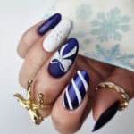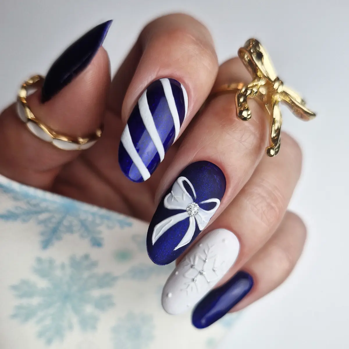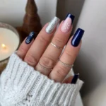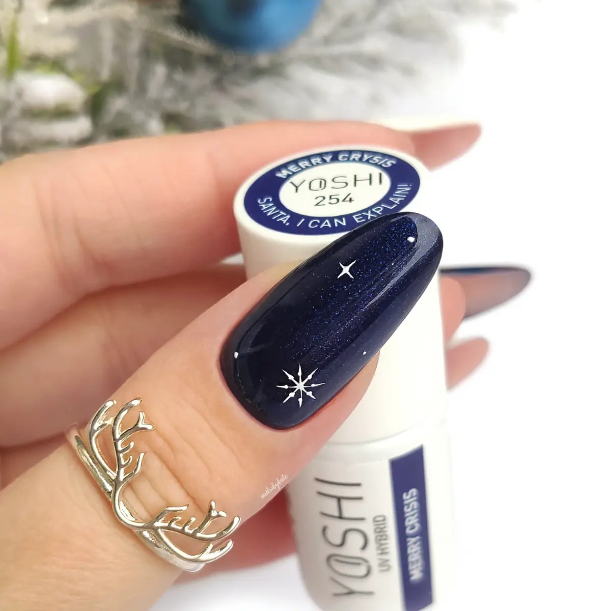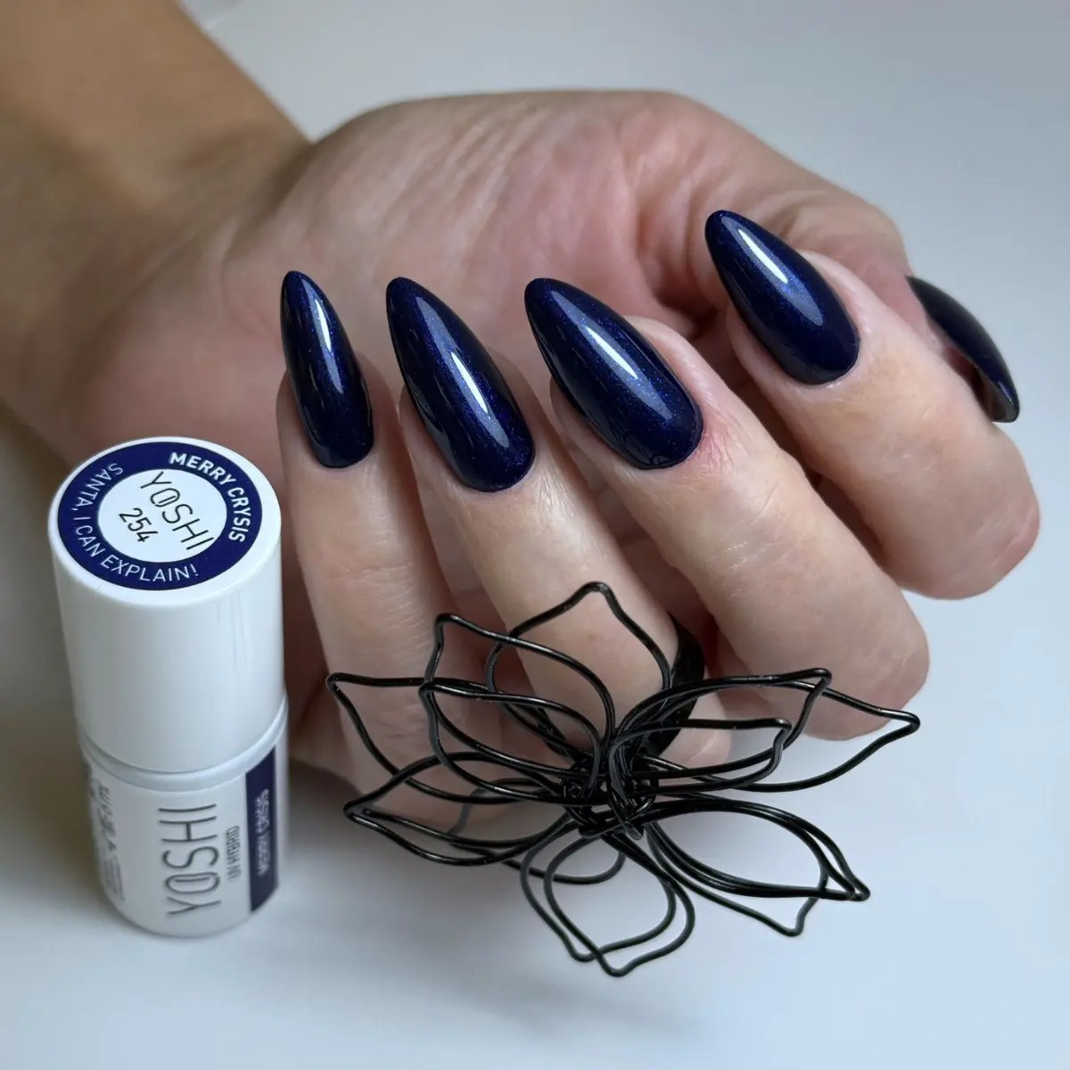 Тёмно-синий оттенок с лёгким металлическим отблеском. Элегантный, как твой взгляд, когда ты изображаешь спокойствие, хотя гирлянды, как и каждый год, запутались, борщ убежал, а очередь за карпом тянется, как экспресс с севера. Сияющий, глубокий и тревожно спокойный. Как тишина перед очередной декабрьской драмой.
