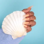 Coral Coast — тёплый коралловый оттенок с деликатными опалесцирующими частицами, которые красиво переливаются на свету. Этот цвет напоминает тепло солнечных лучей, отражающихся от морской глади, придавая дизайнам свежесть и лёгкость. Идеальный выбор для нежных и романтичных стилизаций.