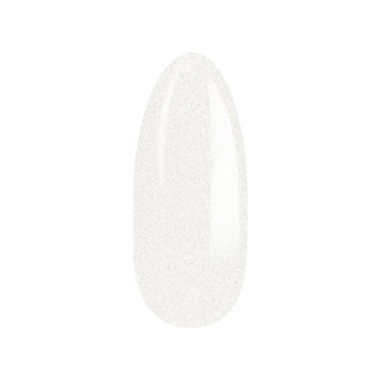 Светлый молочно-белый оттенок с деликатными блестящими частицами, которые мягко подсвечивают цвет. Чистый, свежий и элегантный — красиво подчёркивает форму ногтя.